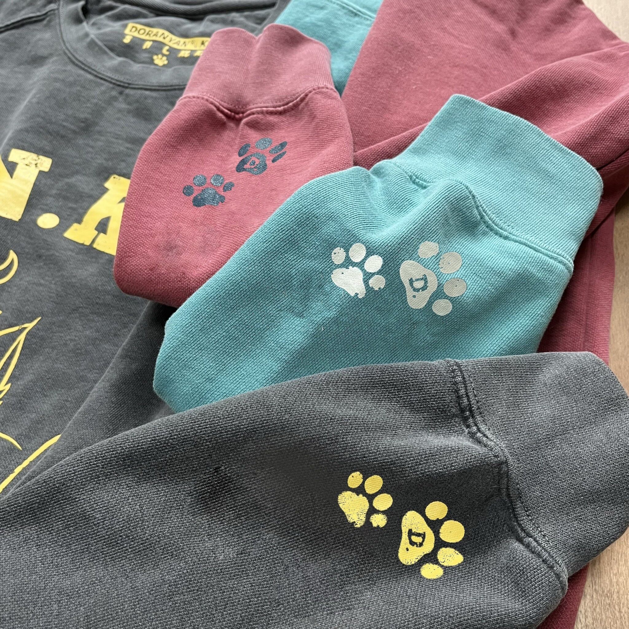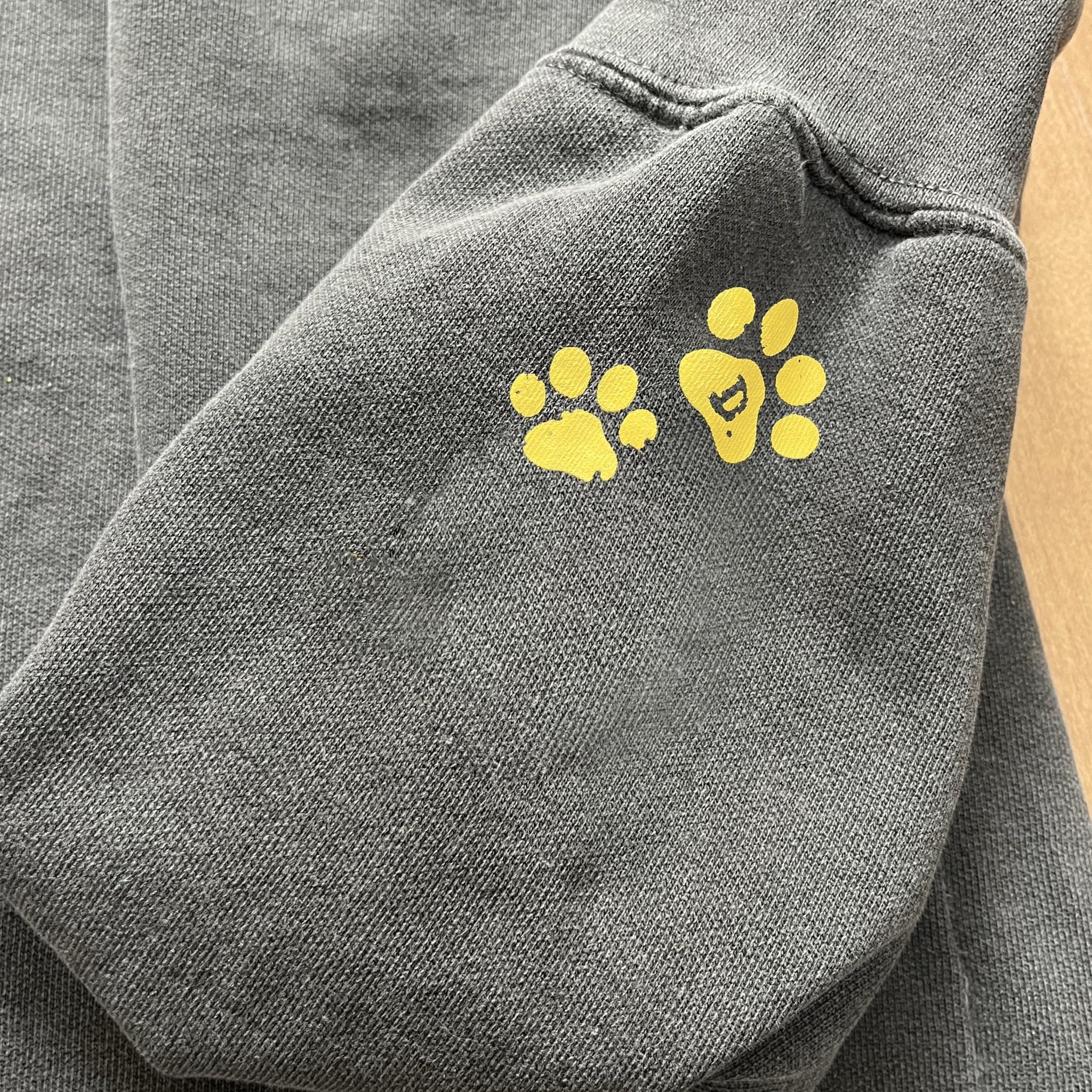 サイズ表記も肉球でデザインされたシルクスクリーン印刷となっております